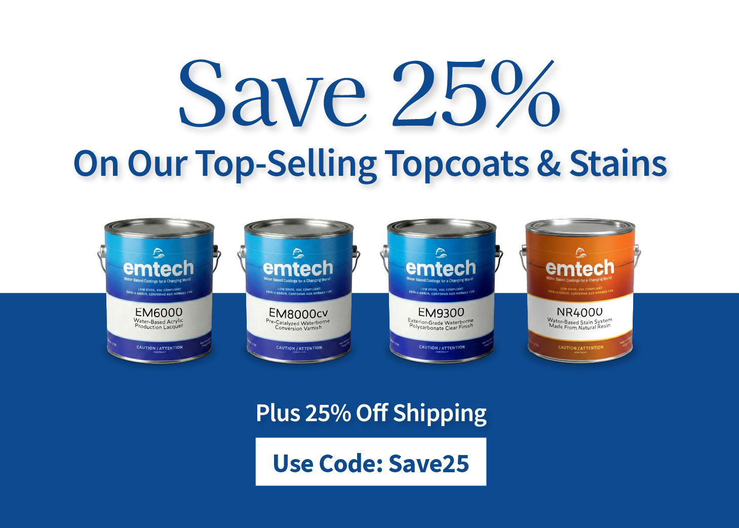 Elevate your finishing results with our two powerhouse sealers. EMTECH® EM1000 Universal Sanding Sealer brings out the natural beauty of wood with rich clarity, fast drying, and easy sanding—perfect for clear finishes or custom stains. For tougher jobs, EMCAT+® Si427 Sealer Isolator delivers a smooth, self-leveling barrier coat that locks down tricky substrates and old finishes, ensuring flawless topcoat results. Both are ultra-low VOC, eco-friendly, and designed for professional performance you can trust.